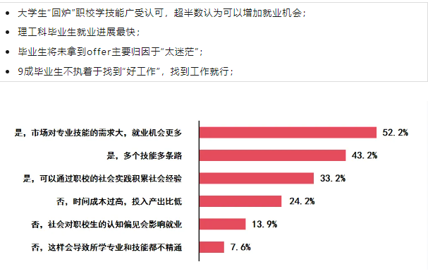 大學生“回爐”職校學技能廣受認可,超半數認為可以增加就業機會;