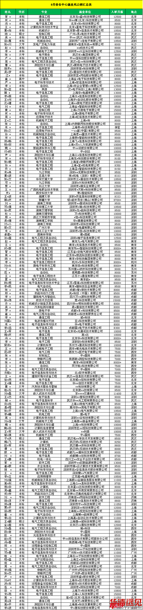 在新一期的高薪就業榜中,華清全國12大分中心均喜報連連!