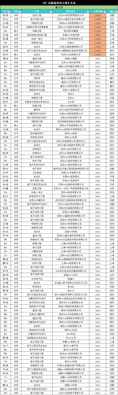 四月高薪就業榜瘋狂來襲,本科畢業生薪資直達15000!