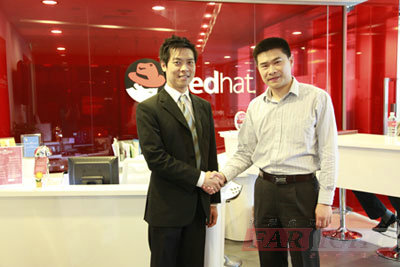紅帽公司大中華區培訓服務總監黃建耀與華清遠見教育科技集團總裁季久峰合影