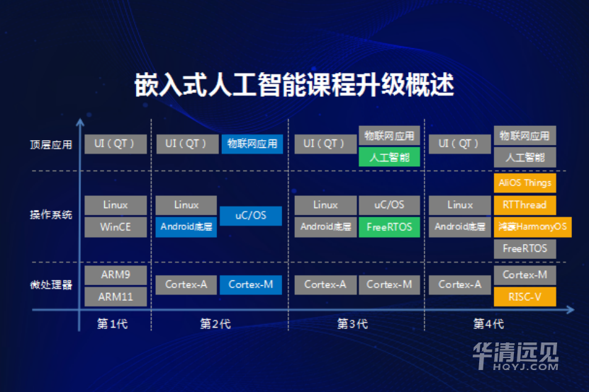2021年,華清遠見不僅完成了品牌升級,也將核心課程進行了全面升級。升級后的嵌入式AI課程中,微處理器增加了最新的RISC-V,開發課程新增AliOS Things、RT-Thread、鴻蒙HarmonyOS三大熱門系統的學習,頂層運用課程則包含UI(QT)、物聯網應用、人工智能三大板塊,全方位提升學員的核心競爭力。課程在研發中聚焦學員就業崗位及薪酬,針對性升級了50%的學科內容,同時針對在職人群,線上學習線下實戰的新模式,解決了在職學員的學習時間碎片化的難題。此次升級緊隨行業技術前沿,滿足學員多元化需求。同時華清遠見匯聚了國內最頂尖的IT行業資深專家和技術精英,擁有核心的技術研發力量和強大的教學資源,為廣大用戶提供個性化、實戰化、智能化的卓越在線學習體驗。