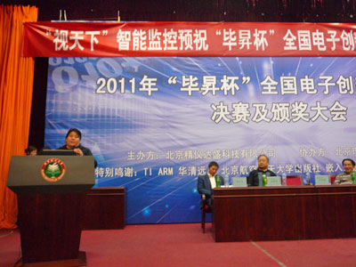 近日,華清遠(yuǎn)見(jiàn)高校拓展總監(jiān)Tracy老師受邀擔(dān)任2011年全國(guó)職業(yè)院校技能大賽 “電子設(shè)計(jì)—嵌入式產(chǎn)品開(kāi)發(fā)”項(xiàng)目的特邀裁判員。全國(guó)職業(yè)院校技能大賽是由北京精儀達(dá)盛科技有限公司主辦,美國(guó)德州儀器(TI)公司、英國(guó)ARM公司、華清遠(yuǎn)見(jiàn)科技信息有限公司、北京航空航天大學(xué)出版社協(xié)辦。全國(guó)范圍內(nèi)的校際比賽,其目的是幫助高等院校全面提高大學(xué)生(高職高專生、本科生、研究生)電子畢業(yè)設(shè)計(jì)、創(chuàng)新設(shè)計(jì)水平,全面改變目前大學(xué)生動(dòng)手能力弱的現(xiàn)狀,培養(yǎng)當(dāng)代大學(xué)生的創(chuàng)新意識(shí)和實(shí)際動(dòng)手能力,提高學(xué)生就業(yè)競(jìng)爭(zhēng)能力,并為全國(guó)高校間的學(xué)術(shù)交流提供一個(gè)良好的平臺(tái)。同時(shí),為鼓勵(lì)參加電子設(shè)計(jì)大賽的專業(yè)講師和高校更多關(guān)注到嵌入式技術(shù)在行業(yè)中的典型應(yīng)用,及時(shí)掌握新的嵌入式企業(yè)需求和應(yīng)用標(biāo)準(zhǔn),大賽組委會(huì)還專門(mén)為此大賽設(shè)立了華清遠(yuǎn)見(jiàn)特別獎(jiǎng),經(jīng)過(guò)多輪的競(jìng)選,層層淘汰,后由哈爾濱工業(yè)大學(xué)華德學(xué)院獲得。