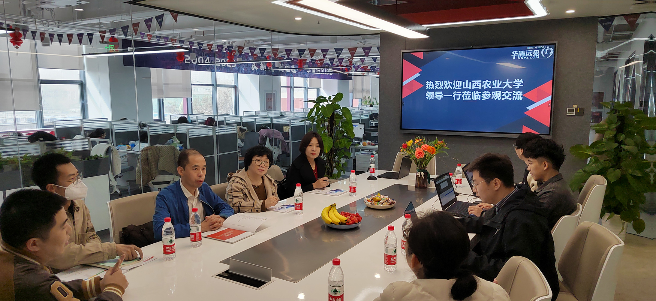近日,山西農業大學軟件學院代表團到訪華清遠見教育集團,就物聯網專業建設、實驗室建設、人才培養、產教融合等方向深度合作展開了座談,并參觀了華清遠見科技集團實訓基地、研發中心生產基地、研發中心智能設備展廳。