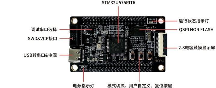 STM32U5核心板采用STM32U575RIT6微控制器,基于32位Cortex-M33內(nèi)核,運行頻率可達160MHz,內(nèi)部Flash容量為2MB,RAM容量786KB。