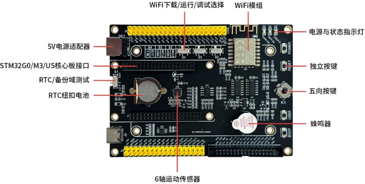 華清遠見STM32U5開發(fā)套件是《嵌入式裸機編程》項目課程的專屬學習開發(fā)套件,套件采用模塊化方式搭配使用,共5部分: