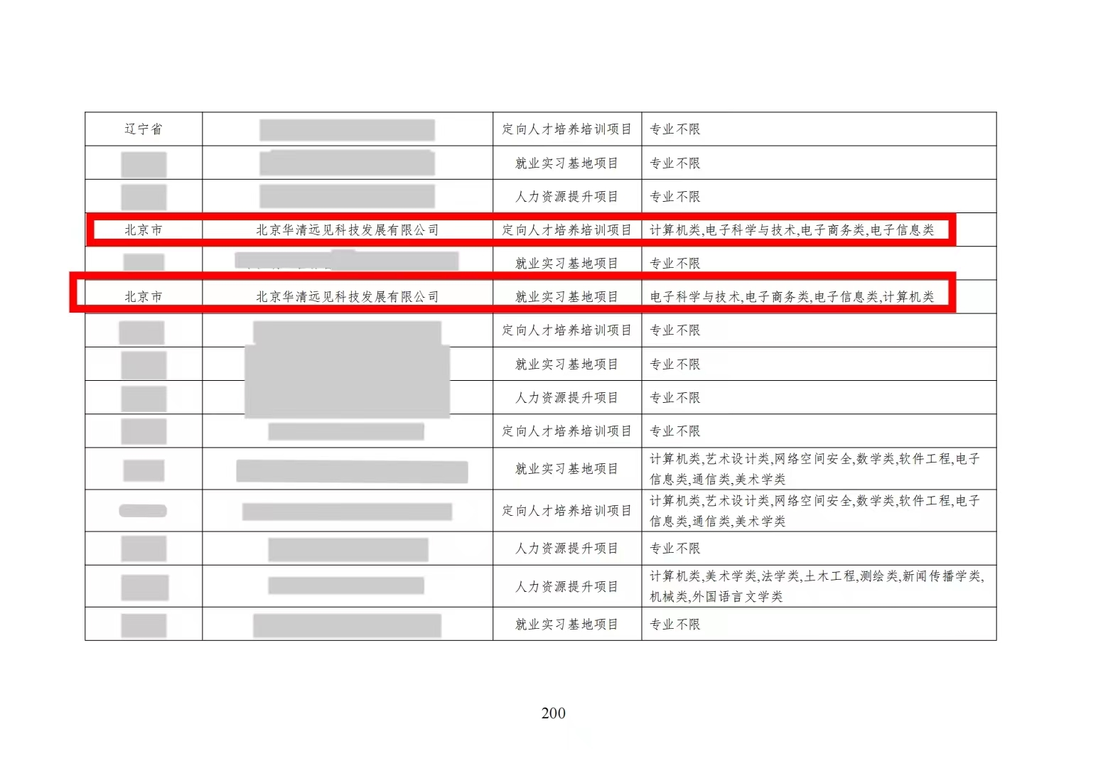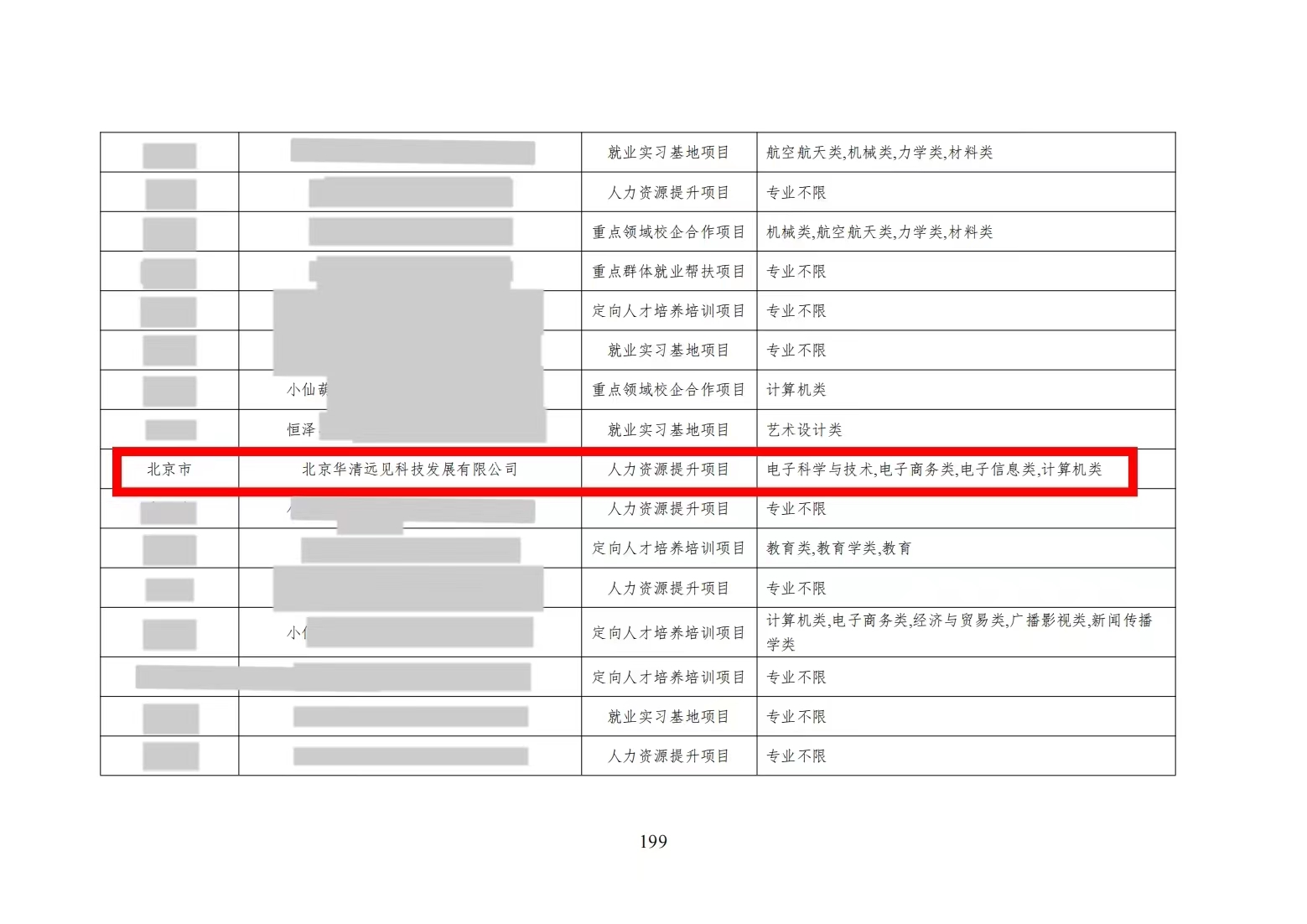 北京華清遠見科技發展有限公司擬設立:定向人才培養培訓項目50項,就業實習基地項目45項,人力資源提升項目25項。