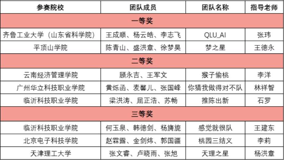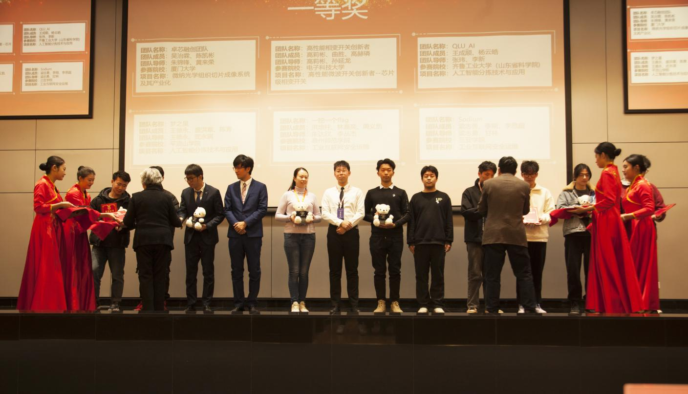 本次大賽共評選出12個一等獎,18個二等獎,27個三等獎。其中新一代信息技術領域專項賽,經過一天的激烈角逐,最終有2支參賽團隊獲得本屆大賽一等獎、3支隊伍獲得二等獎、3支隊伍獲得三等獎。