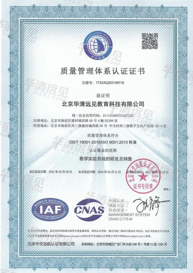 華清遠見連續9年獲ISO9001質量管理體系認證,匠心做產品,用心做教育 時間:2024-04-24      來源:華清遠見