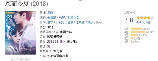 最近又一部校園劇《忽而今夏》火了,豆瓣評分7.8分。開播不久就取得了上億的播放量。