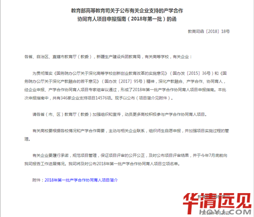 華清遠(yuǎn)見成功獲批教育部2018年“產(chǎn)學(xué)合作協(xié)同育人”項(xiàng)目