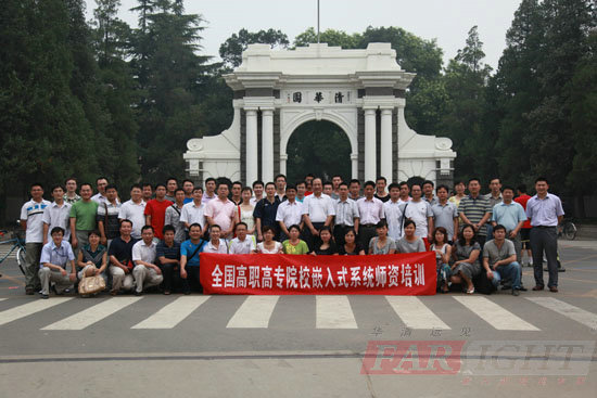 教育部高職高專電子信息專業教學指導委員會的高林主任出席了師資培訓的開學典禮,對來自全國各高校的教師表示熱烈的歡迎,也表達了教職委對各高校開展嵌入式系統教學工作的支持及對各位任課教師的熱切期望,同時預祝本次師資培訓的圓滿成功;人民郵電出版社的姚副社長也出席了本次開學典禮,對高校今后開展嵌入式系統教學工作中教材的提供給予了充分的保證,并針對此次的師資培訓,贈送給各高校教師一套嵌入式系統教材以供參考;主辦方華清遠見的總經理季老師也對各高校的教師表示了熱烈的歡迎,介紹了本次培訓的內容和目的,也表達了做為專業的嵌入式培訓機構,希望在今后能夠和各高校建立長期的聯系,盡我們所能幫助各高校嵌入式教學工作的開展。開學典禮結束之后,各位老師們在清華大學合影留念。