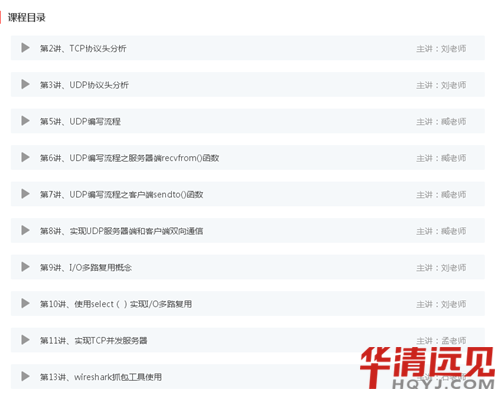 嵌入式應用開發的絕大部分項目都涉及到了網絡功能,有一個好的網絡編程功底,是從事Linux應用開發的基礎。華清遠見作為一個高端IT學習平臺,擁有多種方向的視頻學習教程,內容涵蓋嵌入式、物聯網、Java、HTML5等等。
