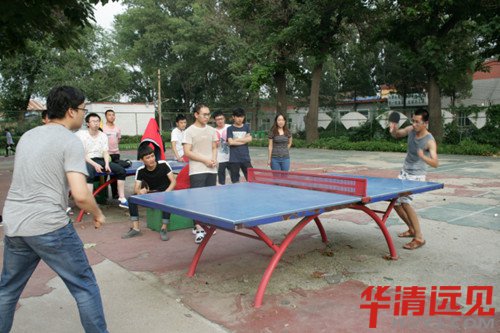乒乓球環(huán)節(jié),兩班同學(xué)一直你追我趕,雙方依次發(fā)球失誤,依次正手抽球不過網(wǎng),展現(xiàn)出了驚人的實(shí)力。