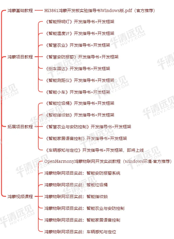 基于Hi3861鴻蒙開發板,華清遠見提供了12大物聯網綜合應用項目。案例中涉及了單片機接口開發、傳感器數據采集、鴻蒙系統開發、NFC配網、WiFi網絡開發、MQTT協議、華為云接入、微信小程序開發等知識點,高度匹配創新競賽實戰。華清遠見Hi3861鴻蒙開發板配備鴻蒙設備及物聯網開發學習資料、單片機入門及項目實戰資料。綜合型資源配置,為參賽人員提供全方位的技術知識保障。