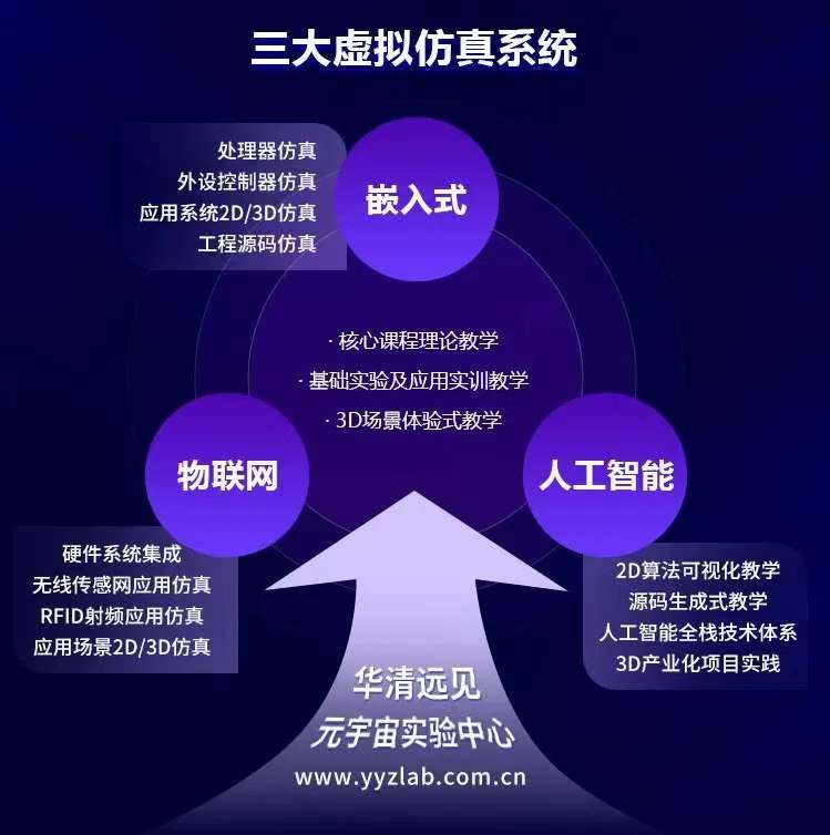 隨著國家層面對(duì)教育現(xiàn)代化的高度重視,虛擬仿真技術(shù)已成為推動(dòng)教育教學(xué)改革的重要力量。目前,國家在重點(diǎn)推動(dòng)虛擬仿真技術(shù)在教育領(lǐng)域的應(yīng)用,通過建設(shè)虛擬仿真實(shí)驗(yàn)室、開發(fā)仿真教學(xué)軟件、整合虛擬現(xiàn)實(shí)設(shè)備等手段,不斷探索和實(shí)踐虛擬仿真技術(shù)在教學(xué)過程中的創(chuàng)新應(yīng)用。在此背景下,華清遠(yuǎn)見教育集團(tuán)積極響應(yīng)國家號(hào)召,致力于將最新的虛擬仿真技術(shù)融入教學(xué)實(shí)踐,為此,特別推出了三大核心領(lǐng)域的虛擬仿真系統(tǒng),包括嵌入式、物聯(lián)網(wǎng)和人工智能,這些系統(tǒng)不僅為學(xué)生和教師提供了一個(gè)高度模擬真實(shí)環(huán)境的平臺(tái)進(jìn)行實(shí)驗(yàn)操作和技能訓(xùn)練,而且通過集成先進(jìn)的仿真算法和交互式學(xué)習(xí)工具,極大地提升了學(xué)習(xí)體驗(yàn)和教學(xué)效果。除了虛擬仿真系統(tǒng)外,華清遠(yuǎn)見還打造了針對(duì)三大學(xué)科方向的沉浸式在線學(xué)習(xí)-元宇宙教學(xué)方案,從零基礎(chǔ)到行業(yè)應(yīng)用案例的體系化課程,以“課程+平臺(tái)+項(xiàng)目”的一體化解決方案助力高校虛擬仿真實(shí)驗(yàn)室建設(shè)。