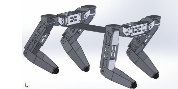 2.機械狗:基于ROS系統的12自由度四足機器狗,具備高靈活性和智能感知能力。搭載激光雷達與單目相機,結合SLAM算法實現精準建圖與自主避障導航,融合目標檢測與PID控制,提升環境交互與運動穩定性,適用于復雜地形探測與智能服務場景。