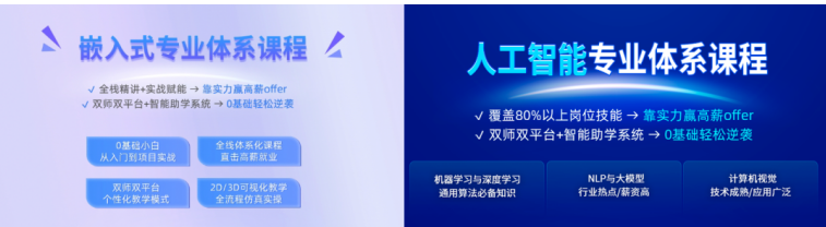 階梯式學習路徑,嵌入式體系課從原理解析到硬件實操再到綜合項,逐層夯實 “底層邏輯 + 工程實踐” 能力,培養具備全鏈路執行能力的研發型技術人才;人工智能體系課實戰全棧項目,聚焦 “數據采集 - 模型訓練 - 硬件部署” 全流程,培養跨領域協作與系統級開發思維,塑造掌握全流程技術的算法型創新人才。