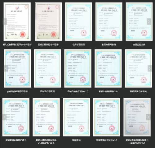 華清遠見自成立以來,一直致力于嵌入式技術、移動開發技術和物聯網技術的應用和開發,多來年憑借自身的研發技術、教學實力、業務范圍方面的硬實力,獲得了上百項權威榮譽。在此之前,華清遠見就曾榮獲多項計算機軟件著作權登記證書,包括智能安防監控系統V1.0、 物聯網智能家居監控系統V1.0、RFID教學實驗系統V1.0、物聯網云服務職能管控系統、 VR物聯網智能控制系統、V1.0智能化交通監控系統V1.0、智能車控制系統V1.0、智能穿戴教學軟件V1.0等。并且在研發專利方向也獲得了嵌入式物聯網實驗平臺《實用新型專利證書》,便攜式醫療診治系統《實用新型專利證書》的認定。截止今天,華清遠見榮獲國家專利及軟著總計達40余項(下圖為部分專利軟著展示)。
