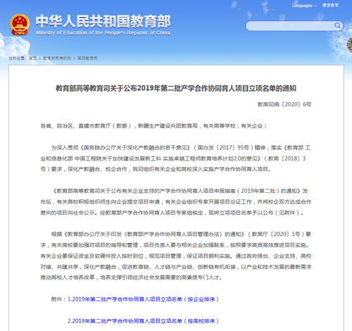 近期,教育部高等教育司公布了教高司函〔2020〕6號《教育部高等教育司關于公布2019年第二批產學合作協同育人項目立項名單的通知》,確定了企業和高校2019年第二批產學合作協同育人項目獲批立項名單,其中,華清遠見教育集團申報的四大方向共71個項目成功獲得審批。
