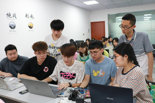 本次實訓時間一共5天。5月16日,樂山師范學院18級電信的學子們從學校出發,下午4點左右到達華清遠見成都中心,隨后華清為學生們安排了住宿。17日開始正式上課。首先,老師帶領同學們一起熟悉開發平臺并學習開發知識,然后進入完整的項目開發流程,5-6個人分為一組,每人負責一個模塊。讓同學們充分發揮主動性,從理論知識到實踐應用全方位鍛煉,在老師的指導下,做出自己的項目。