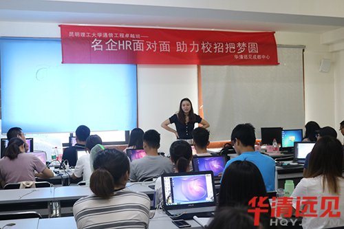 針對大學(xué)生就業(yè)的問題,2019年6月29日上午9點(diǎn)半,華清遠(yuǎn)見成都中心特意為昆明理工來實(shí)訓(xùn)的學(xué)生開展了一場名企HR面對面,助力校招把夢圓的座談會。活動特別邀請了中軟國際有限公司的人事經(jīng)理劉老師以及成都摩勒普科技有限公司的人事經(jīng)理周老師與同學(xué)們面對面進(jìn)行互動交流,解答了同學(xué)們關(guān)于校招、就業(yè)、面試等相關(guān)疑問。
