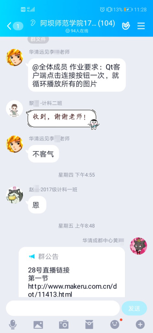 一場突如其來的疫情,讓我們措手不及,眾多高校學子延期開學。停課不停教,停課不停學。雖在家中,但學習不能因此延誤。2020年2月17日-3月13日,華清遠見成都中心的老師們為阿壩師范學院2017級計算機科學與技術專業的近百名學子們進行了為期二十多天的實訓。與往常不同的是,這次實訓并非是傳統的面對面形式,而是以線上教學的方式完成。