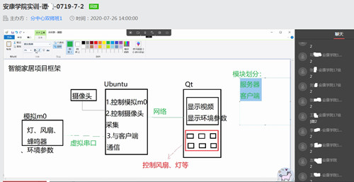 2020年7月19日-7月29日,華清遠見成都中心與安康學院聯合開展了一場線上實訓課。此次實訓針對的是2017級物理與電子工程學院電子信息工程專業的2017級學子們。實訓項目為智能家居,成都中心譚老師擔任此次實訓主講老師。