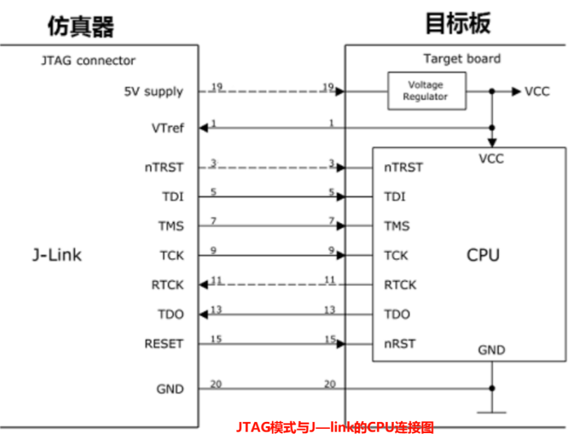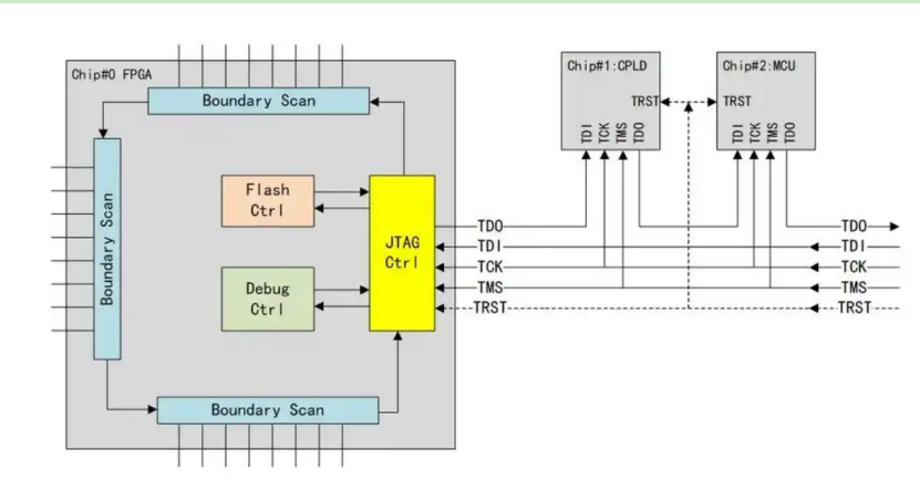 通過這四個信號,JTAG 能夠控制和訪問目標設備的各個寄存器、內存以及執行控制流程。