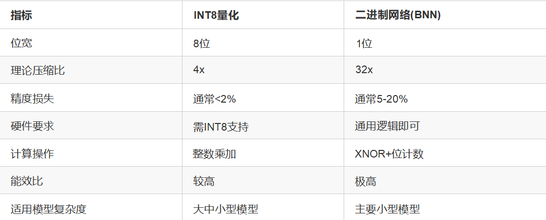 模型量化技術對比:INT8與二進制網絡(BNN) 的精度與效率權衡