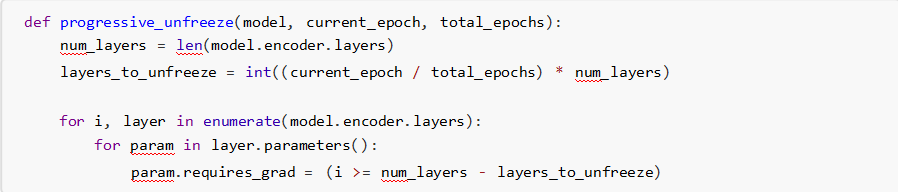 按照從底層到頂層的順序逐步解凍網(wǎng)絡(luò)參數(shù):