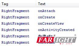 可以看到,當RightFragment第一次被加載到屏幕上時,會依次執行onAttach()、onCreate()、onCreateView()、onActivityCreated()法。