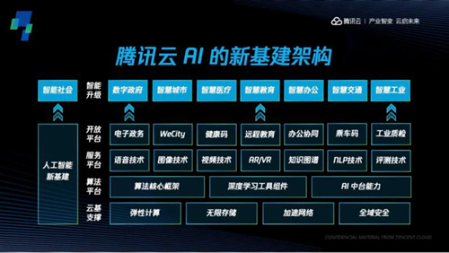 另外,騰訊首次公布AI新基建“一云三平臺”架構(gòu)。即基于騰訊云為AI提供強大的底層算力資源,“三平臺”則包括算法平臺、服務(wù)平臺以及開放平臺。