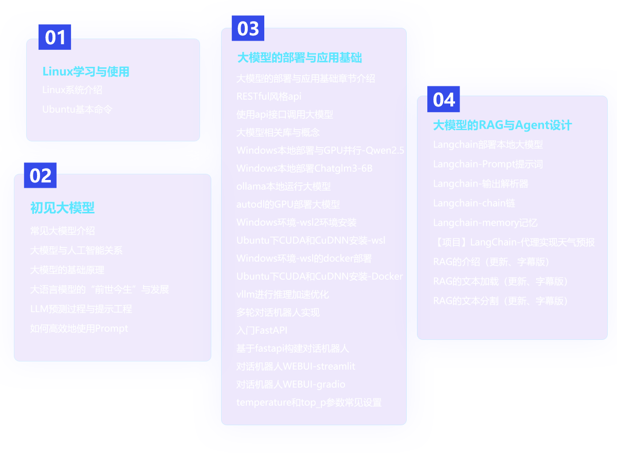 深入挖掘從transformer到大模型的歷史變遷及技術棧的遷移,帶領大家從零開始搭建GPT大模型網絡,基于此學習各開源大模型的部署與微調。