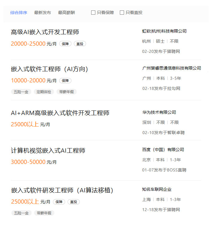 • 嵌入式AI工程師崗位招聘