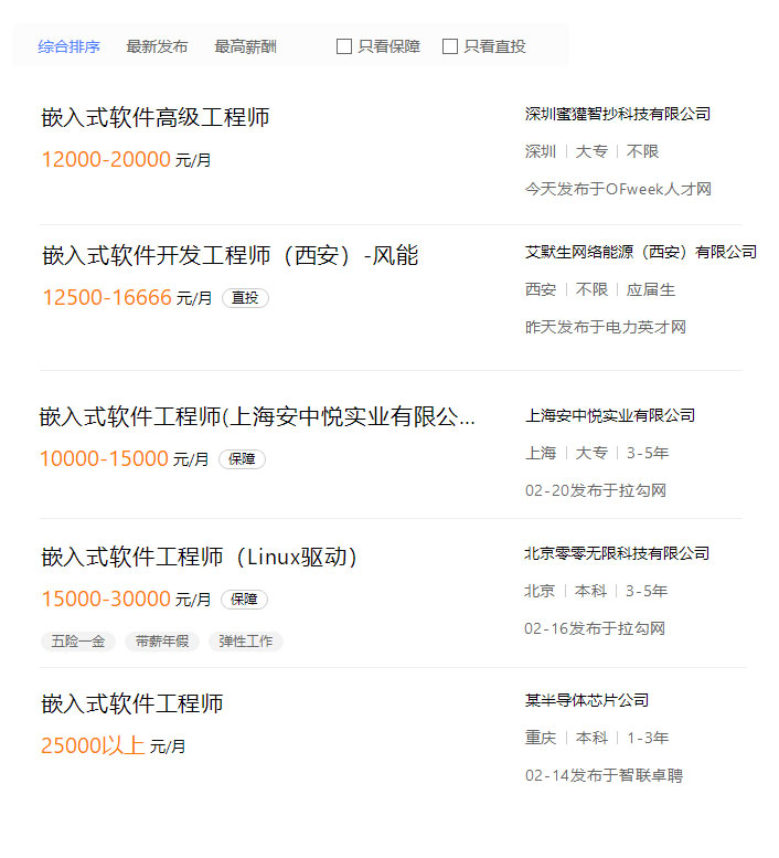 • 嵌入式工程師崗位招聘