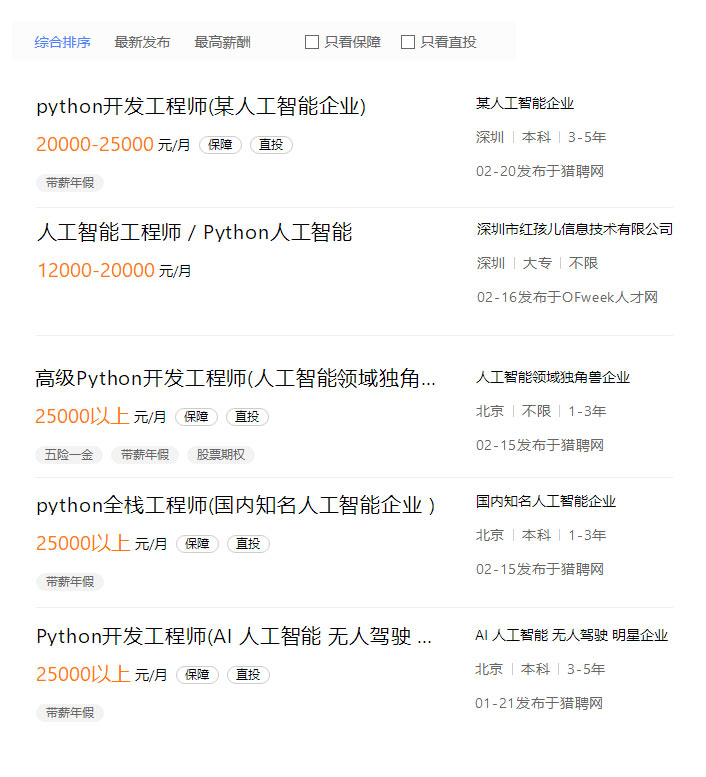 • 人工智能Python工程師崗位招聘